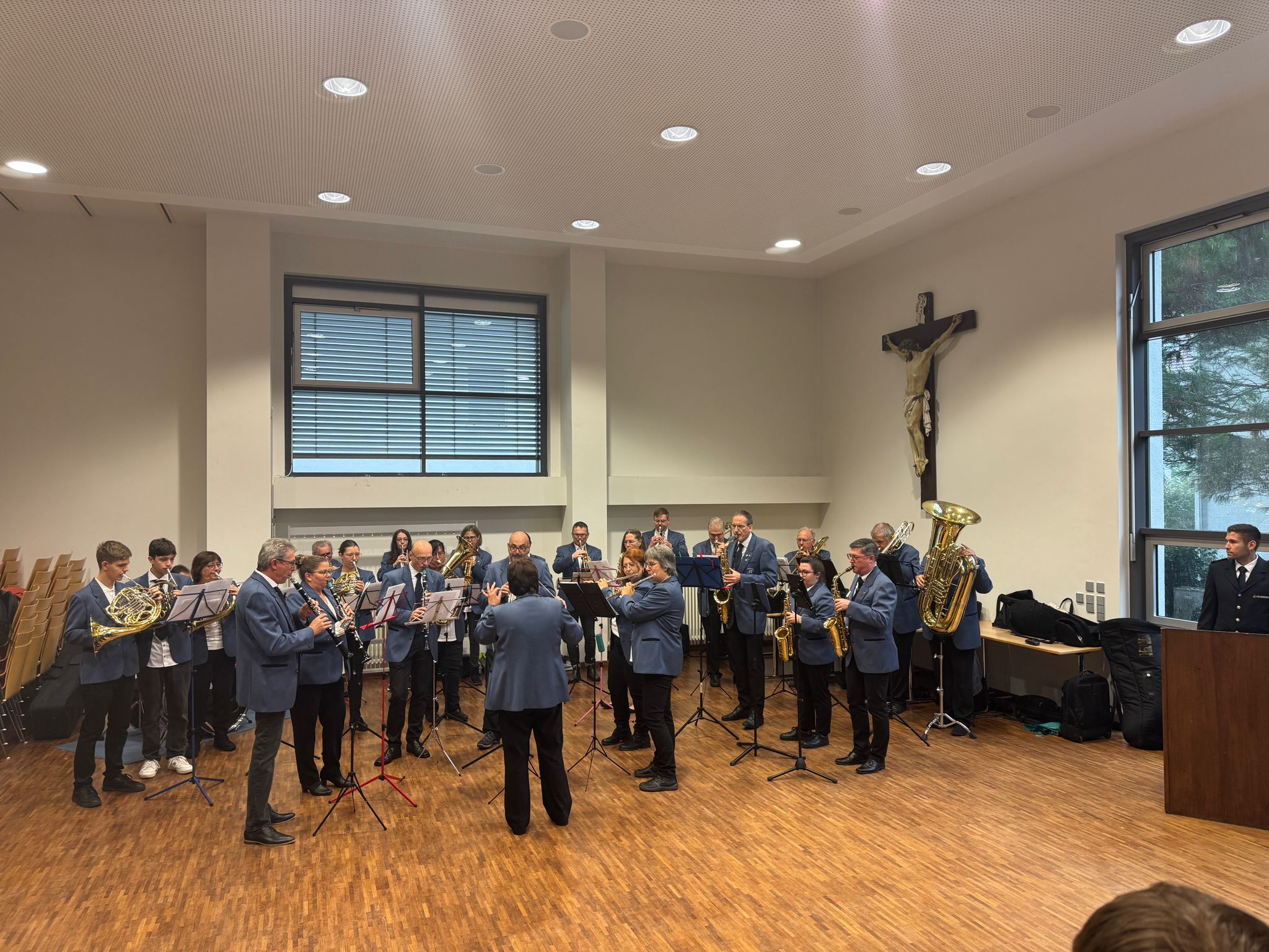 Trotz des regnerischen Wetters ließen wir uns die gute Laune nicht nehmen. Kurzerhandwurde die Veranstaltung nach drinnen verlegt, wo die Feierlichkeiten beginnen konnten.Wir haben uns sehr gefreut, diesen besonderen Anlass musikalisch mitgestalten zudürfen und bedanken und herzlich bei der Feuerwehr.