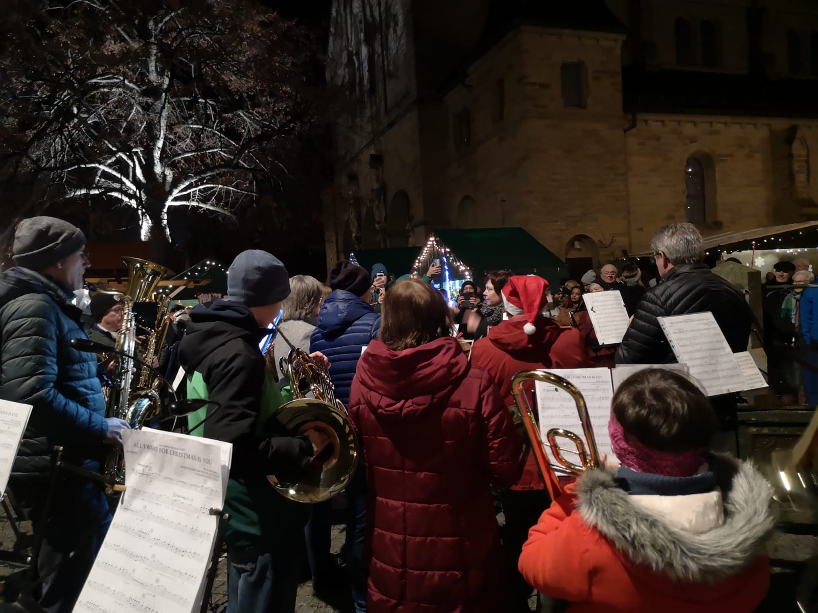Nach den mitreißenden Klängen von "All I want for Christmas" beendete der MVÖ die Darbietung traditionell mit den Liedern "Kling Glöckchen" und "Lasst uns froh und munter sein". Glücklicherweise hatte der anfängliche Regen rasch aufgehört, sodass wir mit den zahlreichen Besuchern diesen wunderschönen vorweihnachtlichen Höhepunkt im Östringer Jahresverlauf gemeinsam genießen konnten.
